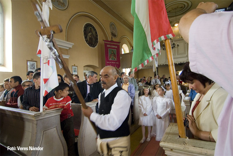 Görög katolikus temploma 1742-ben épült Szent Miklós tiszteletére. 1914-ben a görög katolikus hívek római katolikus hitre tértek át, a templom hívek nélkül maradt. 2012 óta a csíklázárfalvi római katólikus egyházközséghez tartozik.